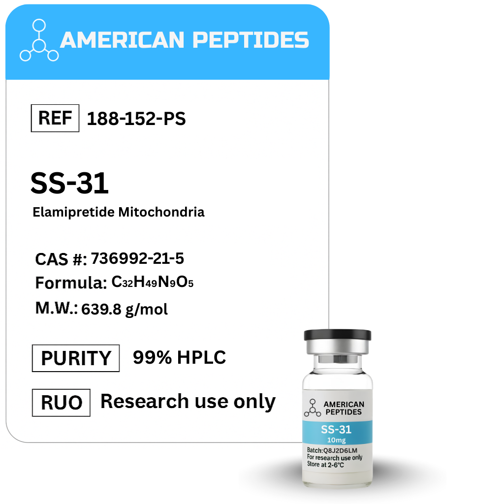 This batch of SS-31 (Elamipretide) Mitochondrial Peptide has been third party lab tested and verified for quality.